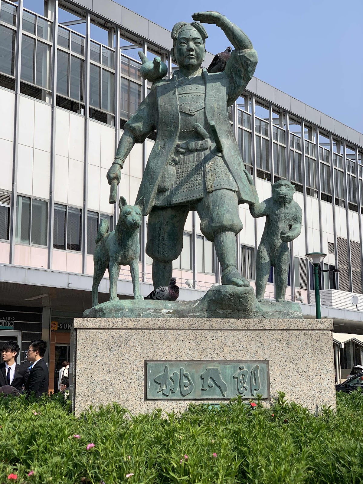 Okayama is famous for its fruits and Momotaro legend. Statue of Momotaro standing out Okayama station.